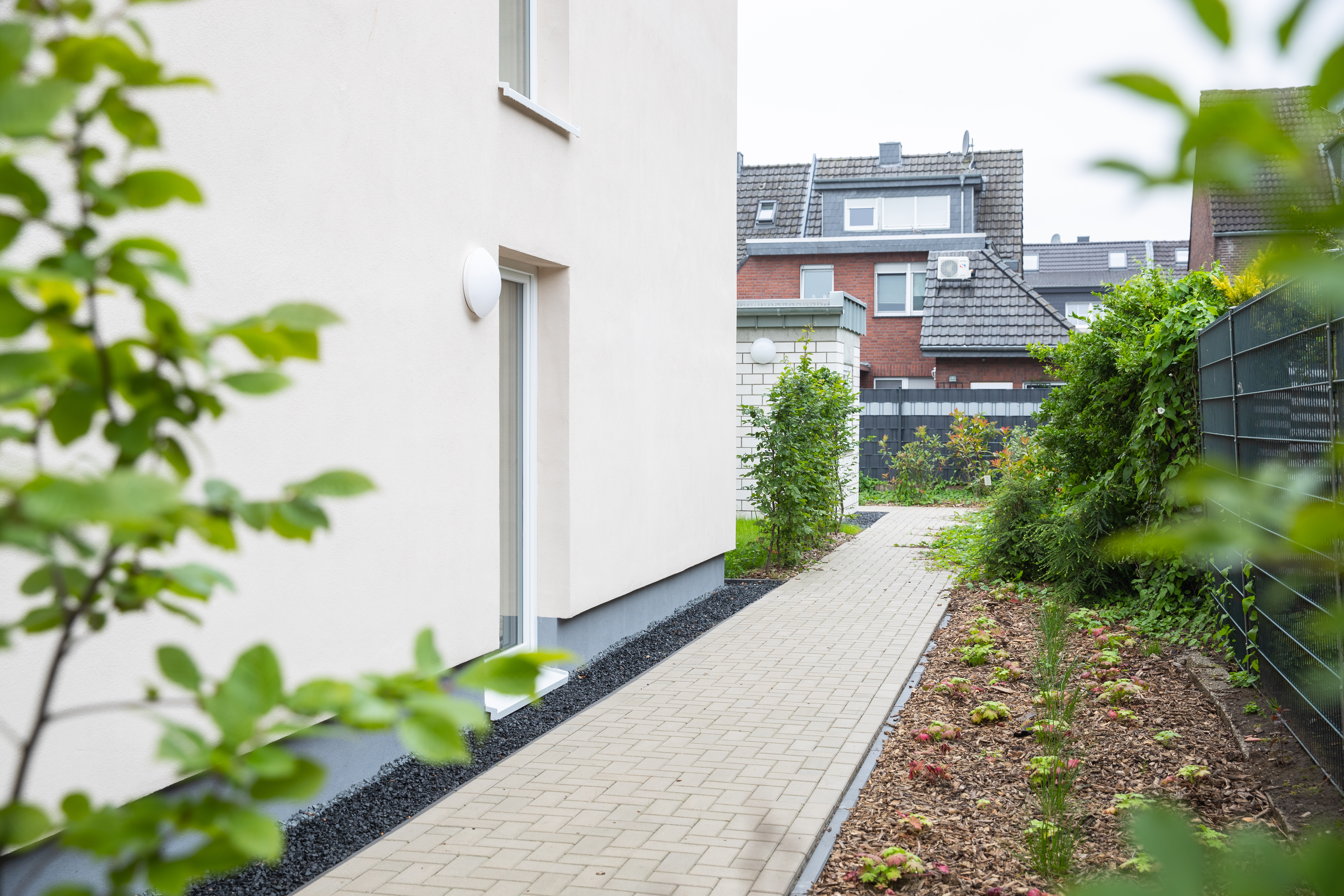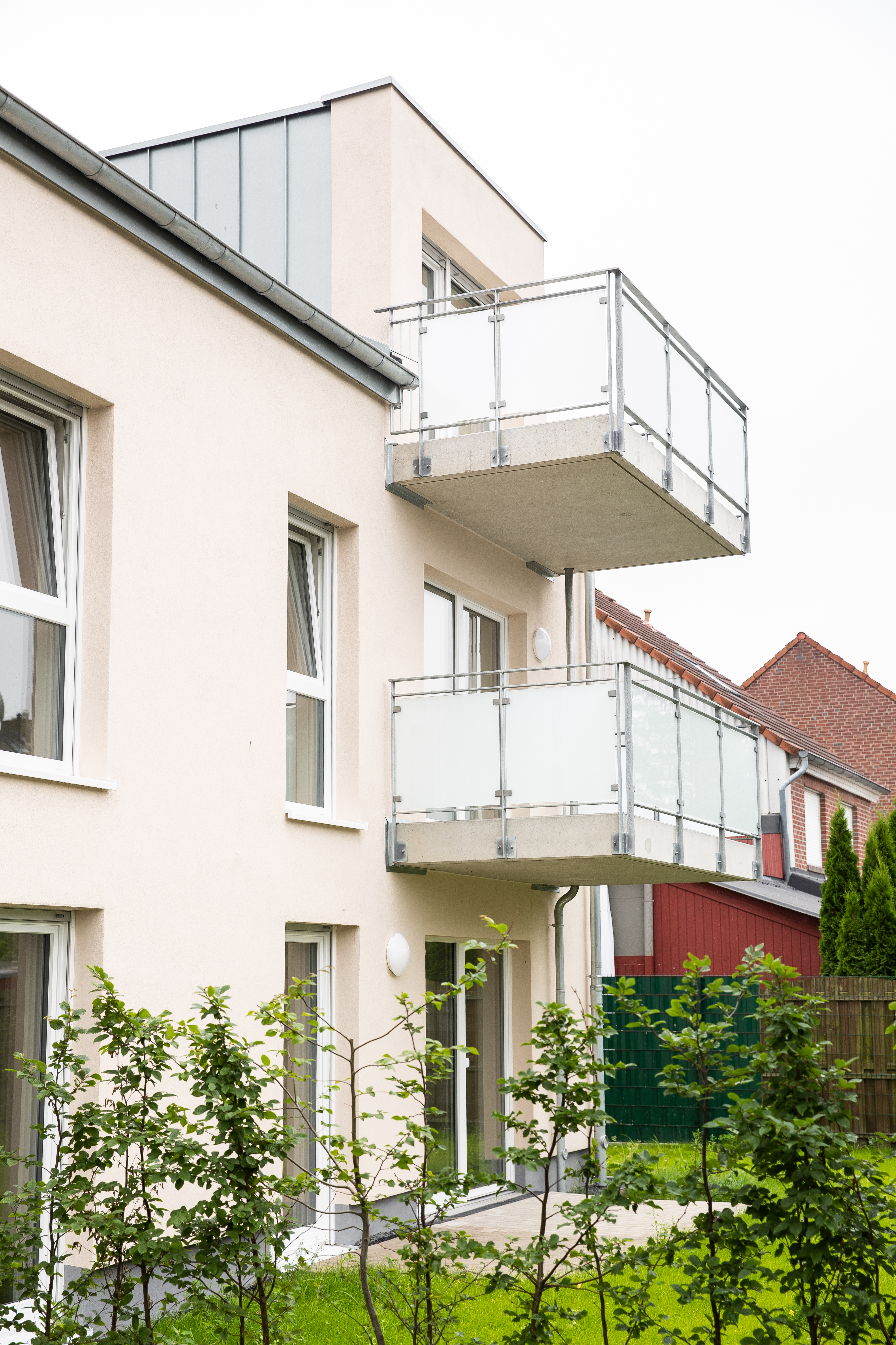 In Emmerich wichen 4 baufällige Reihenhäuser, um ein modernes Mehrfamilienhaus mit 8 Wohneinheiten in Passivhausbauweise realisieren zu können. Als geförderter Wohnungsbau konzipiert, konnte der vorab angesetzte Kostenrahmen sogar unterschritten und kostengünstiger Wohnraum zur Verfügung gestellt werden, der in Emmerich dringend gebraucht wird. Das Gebäude verfügt über 2- bis 4-Zimmer-Wohnungen, die hell gestaltet sind. Balkone und Terrassen erweitern den Wohnraum. Das separate Abstellraumgebäude mit extensiver Dachbegrünung stellt den Bewohnern darüber hinaus Lagerflächen zur Verfügung.